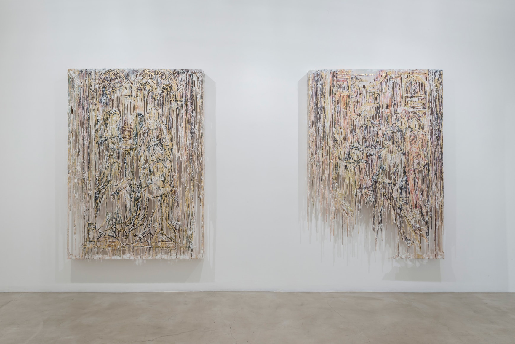 Diana Al-Hadid’s first solo exhibition at the gallery, titled Ground and Figures, presents a combination of various work: three-dimensional paintings, drawings on mylar, sculpture, and a site-specific installation. While continuing her course of inventing visually distinct and compelling work, for which she is well recognized, this exhibition advances several aspects of her practice – in scope, scale, and subtle shifts of color palette.