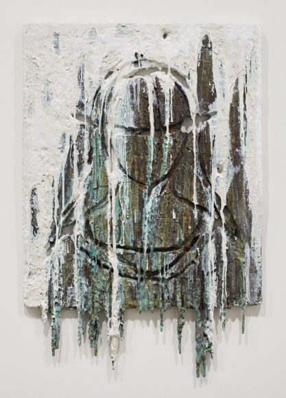 In Al-Hadid’s sculptural panels, she experiments with time, matter, and space to conceive gossamer labyrinths that appear capricious and transformable in their tangled layers and delicate fluidity, while these works simultaneously probe the boundary between painting and sculpture. Intricately layered compositions express a tactile sense of depth, where natural inconsistencies and organic imperfections express the artist’s rigorous manual process. Al-Hadid calls upon Northern Renaissance paintings as source material for these works, allowing their atmospheric sense of drama and whimsy to instill her panels with a sense of movement and life. Primarily landscapes, these compositions reveal strong horizontal movement, drawing the eye across each panel to create an illusion of panoramic space. Reference images from Renaissance masters such as Johan Christian Dahl, Joseph Michael Gandy, and Herri Met De Bles provide a foundation from which Al Hadid shapes her own narrative – a heavily material narrative steeped in formal examinations of scale and depth.