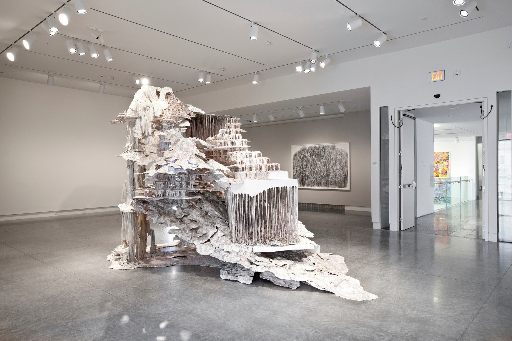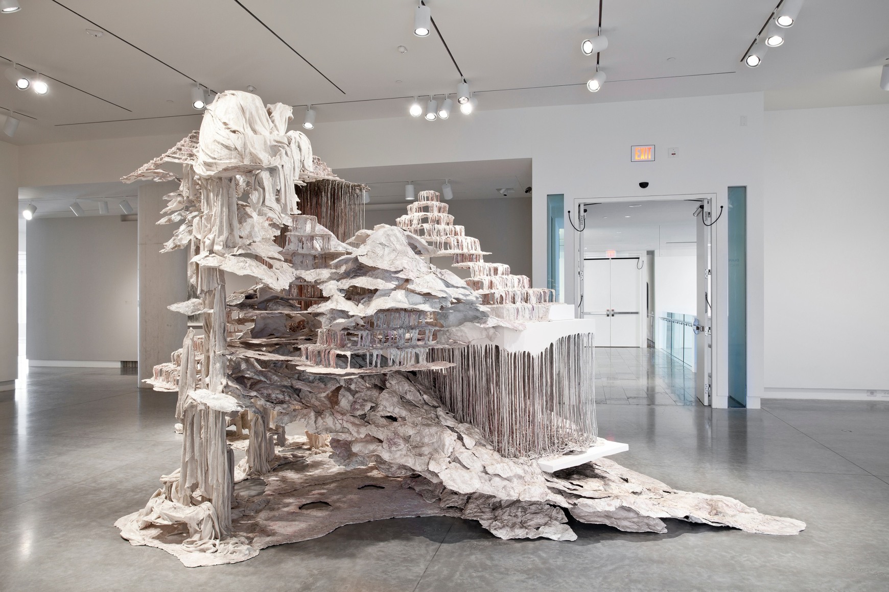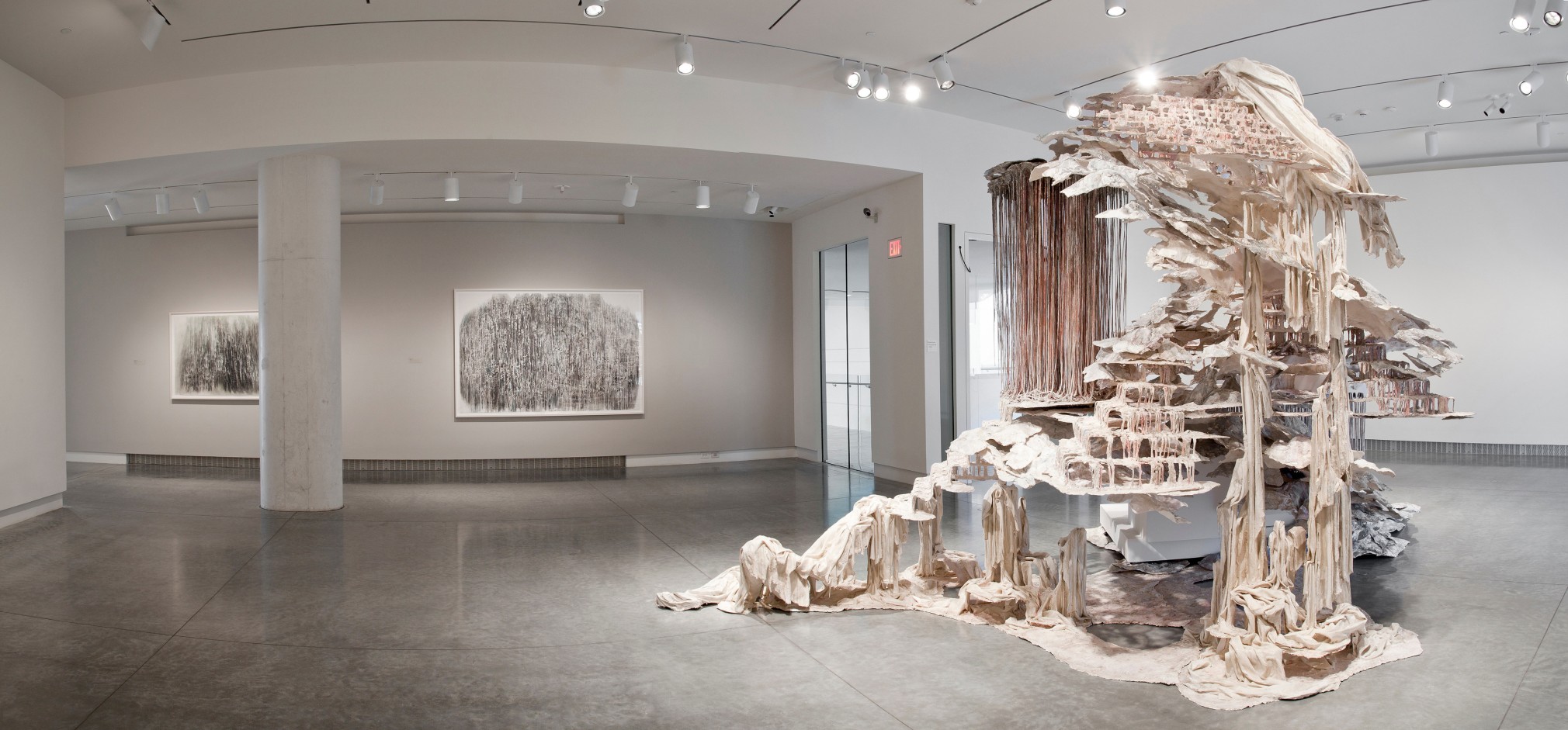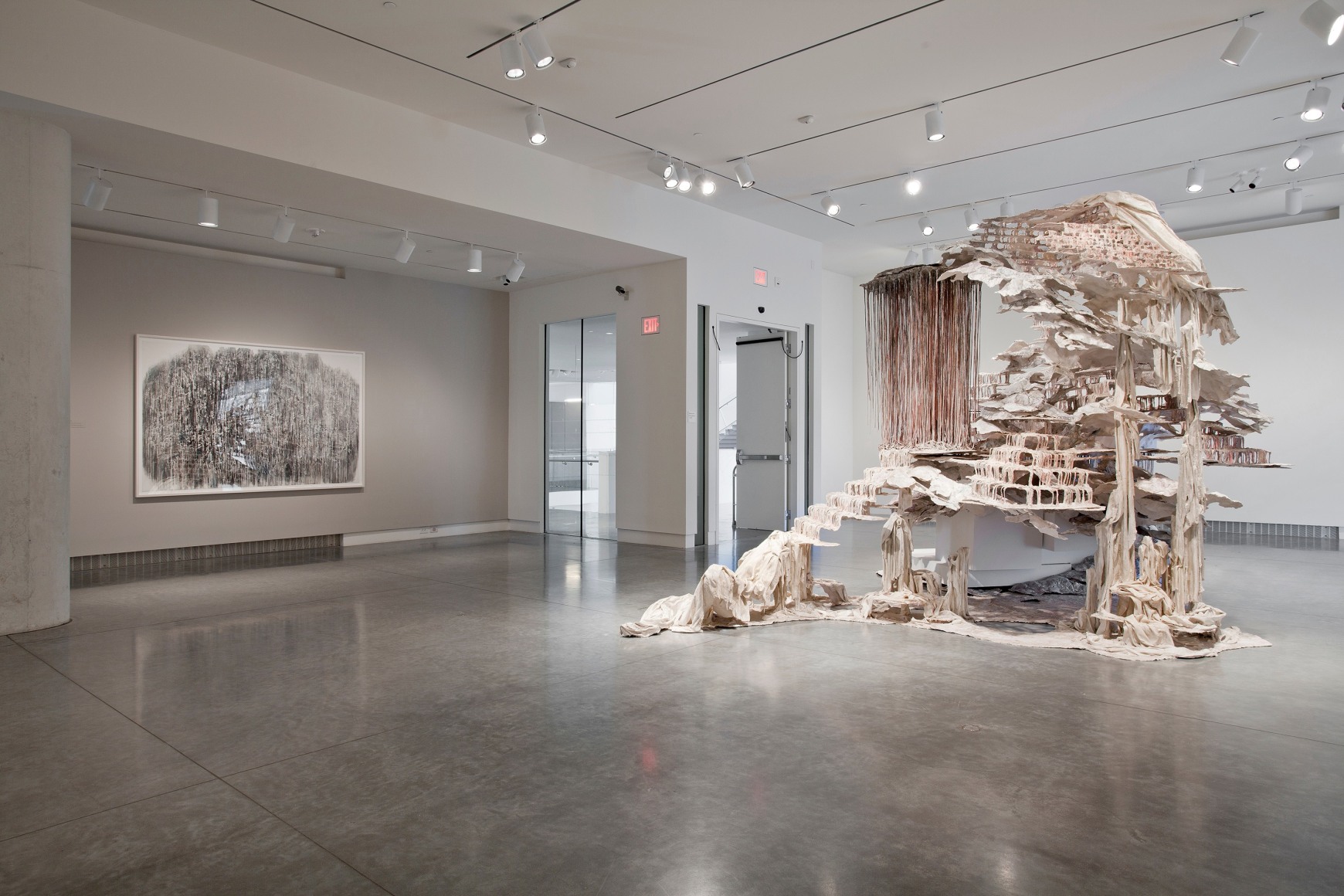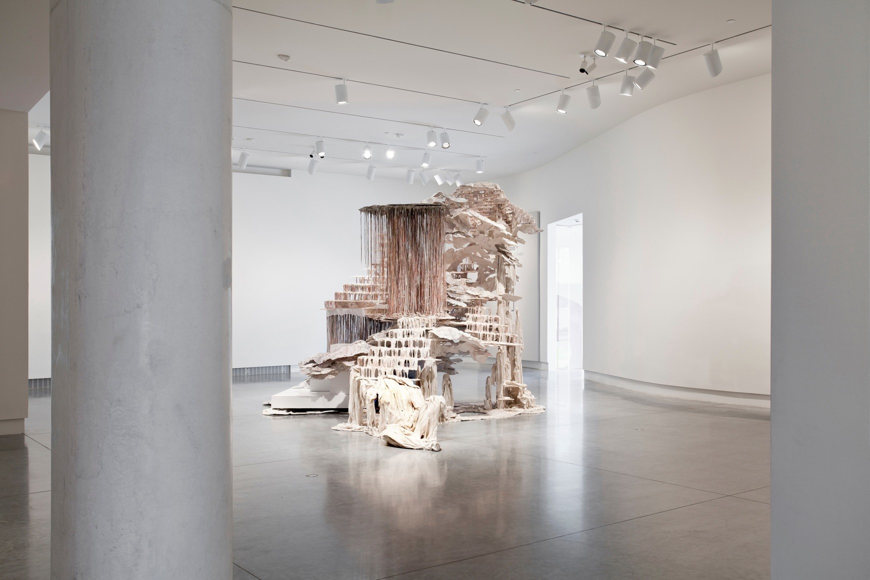 Al-Hadid makes complex sculptures that seem in a state of flux, suggesting both incompletion and decay. Underlying her large-scale, baroque forms are a wide array of influences, including ancient Biblical and mythological narratives, Arab oral traditions, Gothic church construction, Western painting, Islamic ornamentation, and scientific advances in physics and astronomy. The exhibition features a single new monumental sculpture—Trace of a Fictional Third—that interweaves landscape, architecture, and the human figure. It is accompanied by a selection of new, heavily worked graphite drawings that shed light on Al-Hadid’s creative process. Al-Hadid received her MFA in sculpture from Virginia Commonwealth University in Richmond and currently lives and works in New York.
