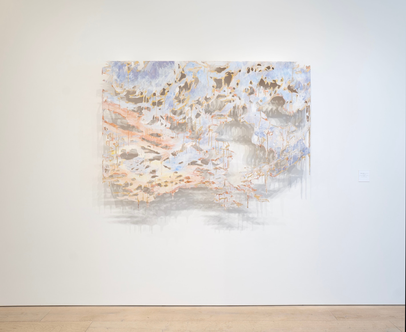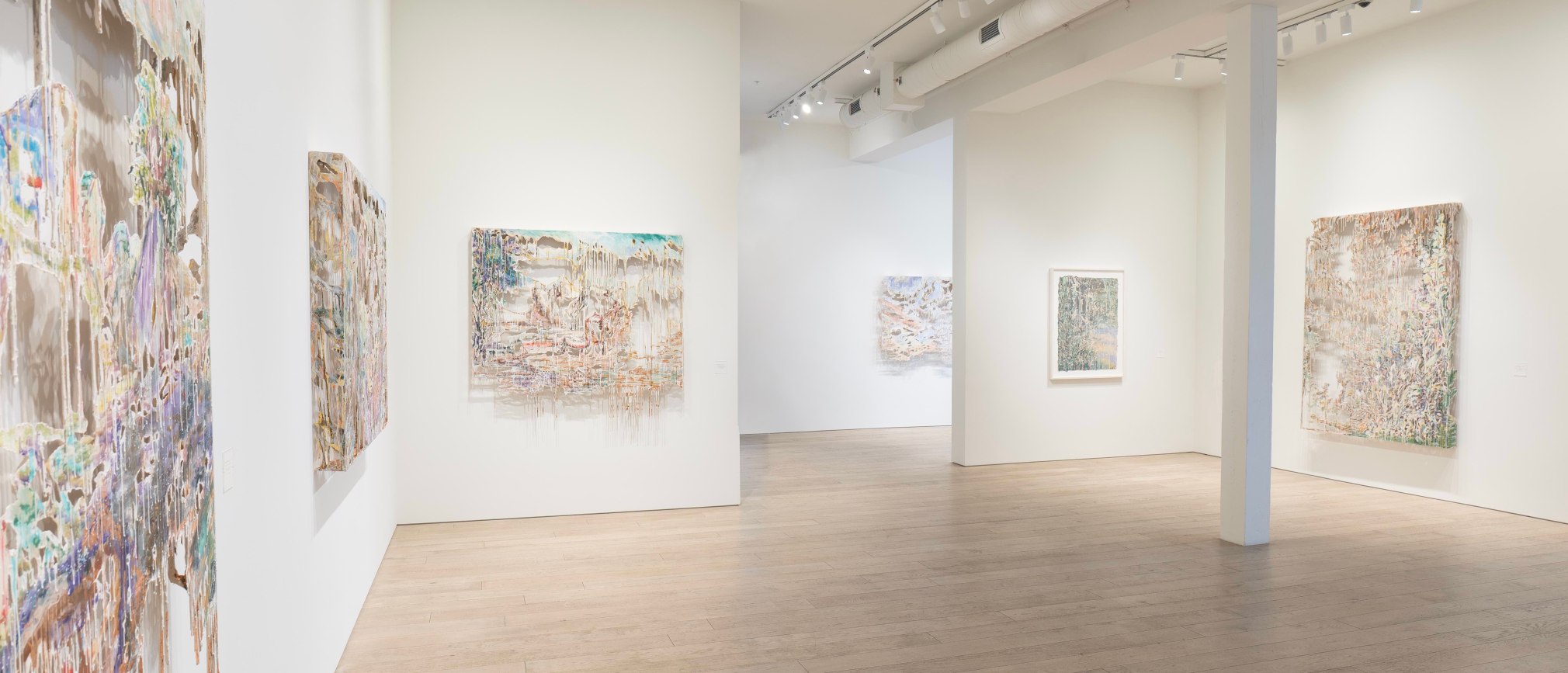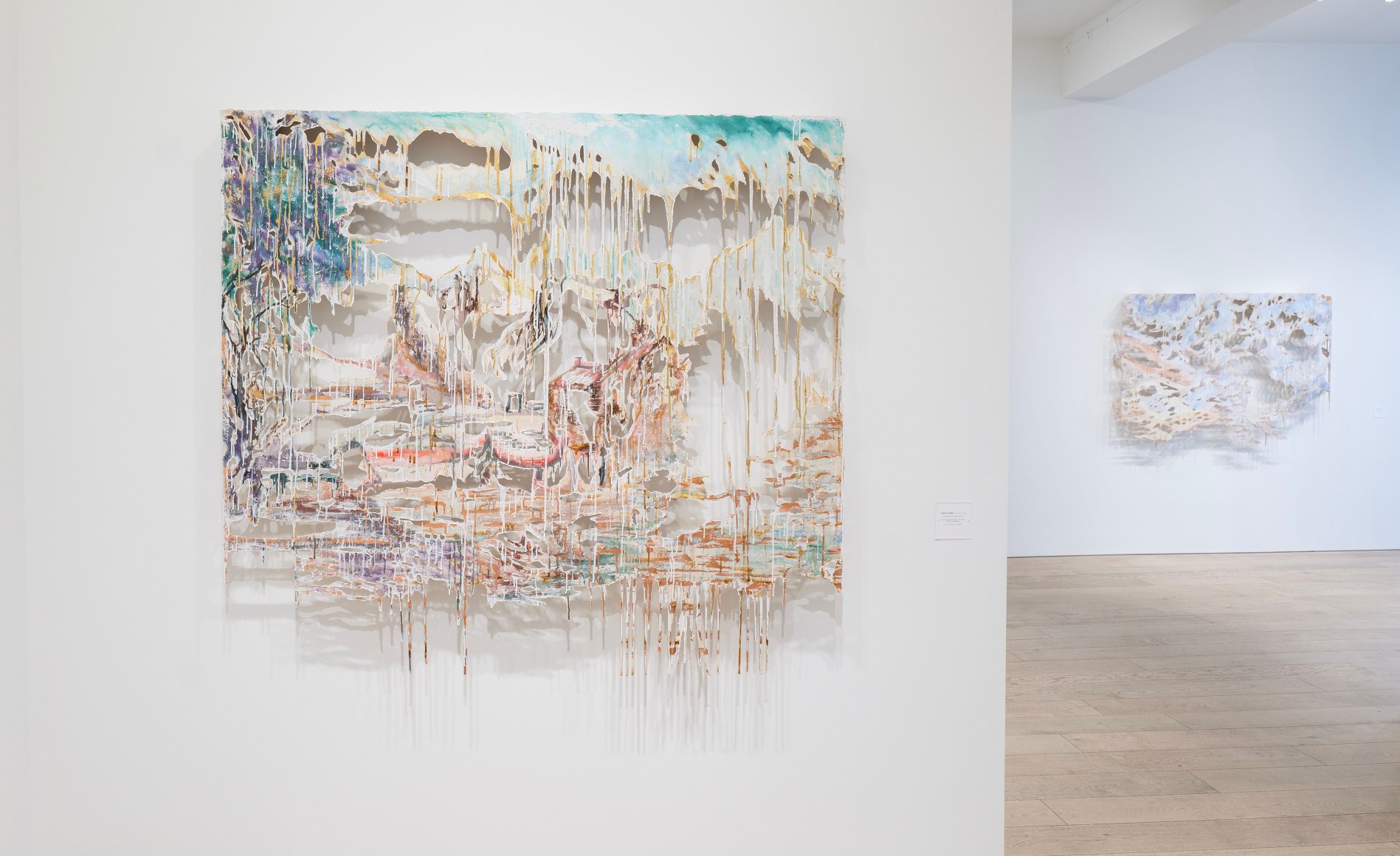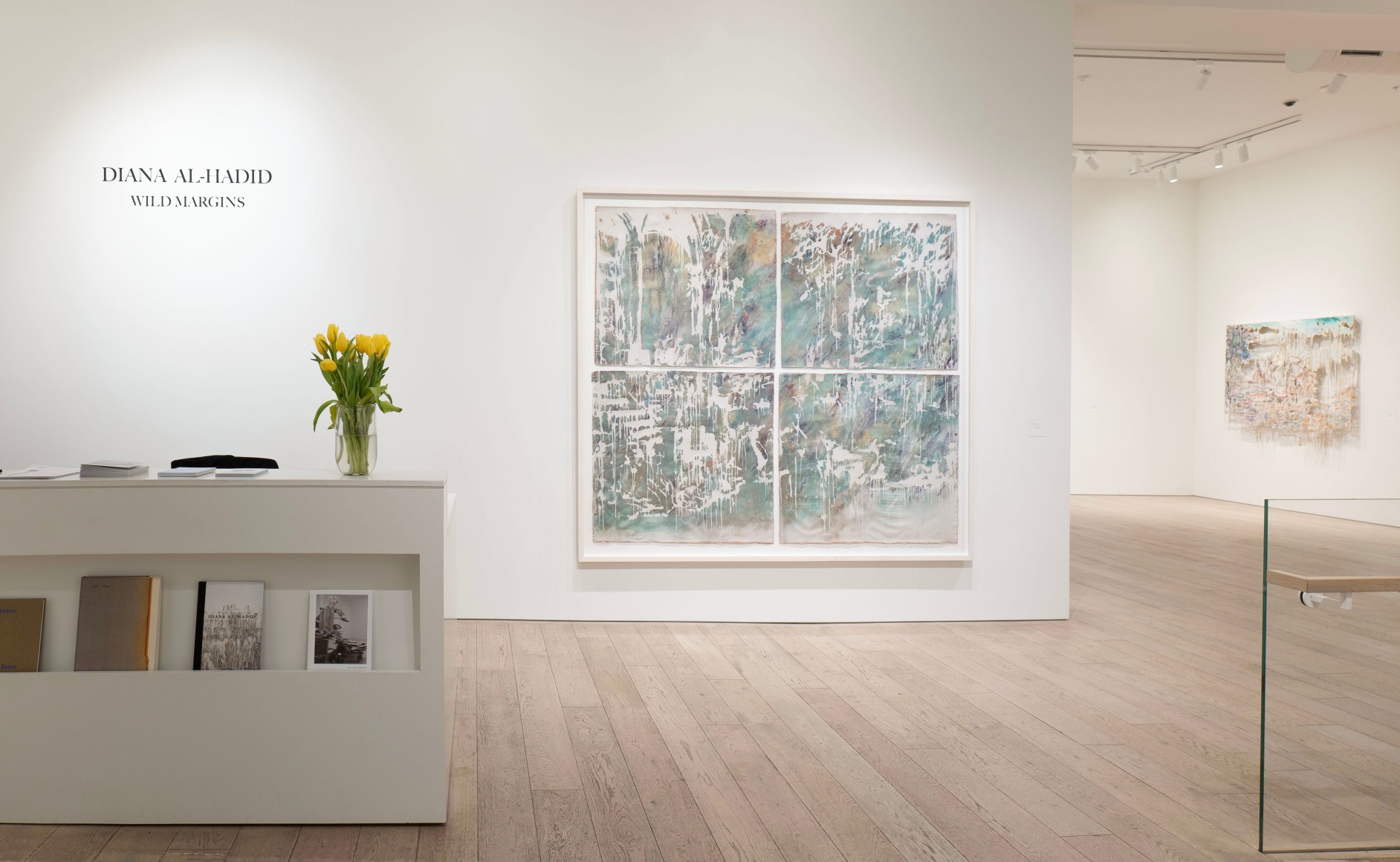 Wild Margins exhibits Diana Al-Hadid's first career exploration of works produced and inspired by techniques of hand-papermaking learned during her year-long residency at Dieu Donné. As a Lab Grant Resident, an invitation-only residency that allows mid-career and established artists to explore the art of papermaking, Al-Hadid worked with expert paper makers to master new processes such as pulp painting, blowout, and stenciling. Calling the paper process “one of the most revolutionary pieces of her practice recently,” Al-Hadid approaches making these paper pulp works in a similar fashion to her larger mixed media works, blending layered materials and substrate until completely cohered.
