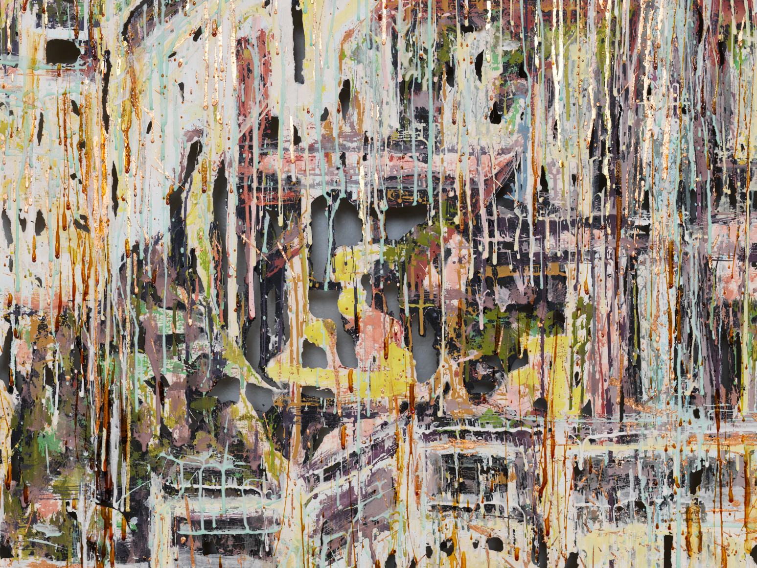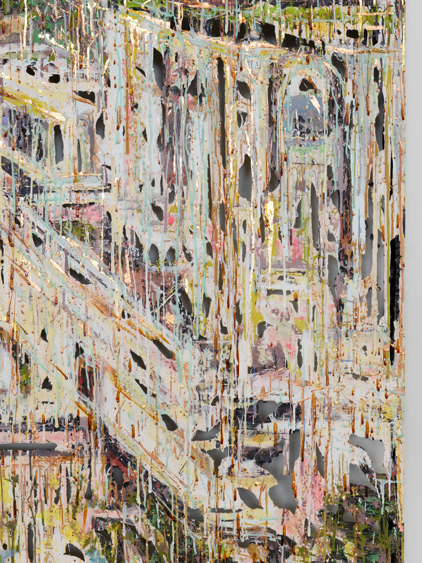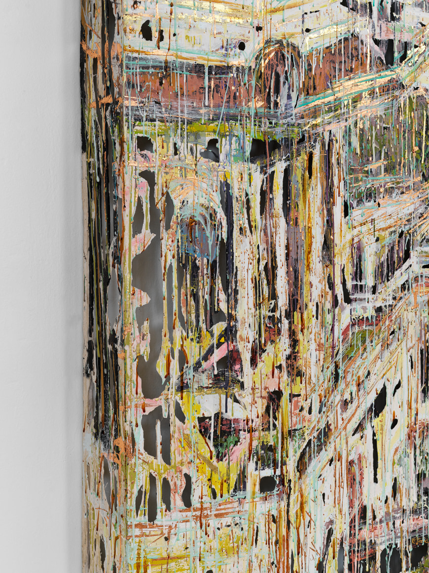 2021 polymer gypsum, fiberglass, steel, plaster, gold and copper leaf, pigment 70 x 63 x 4 inches 178 x 160 x 10 cm Photo credit Dan Bradica