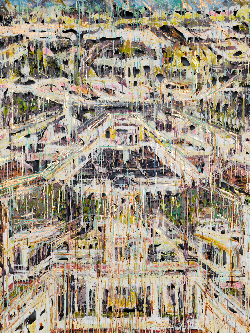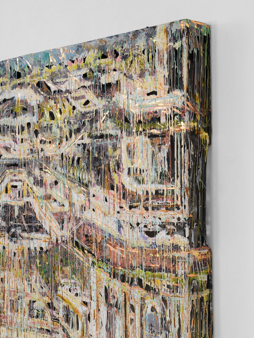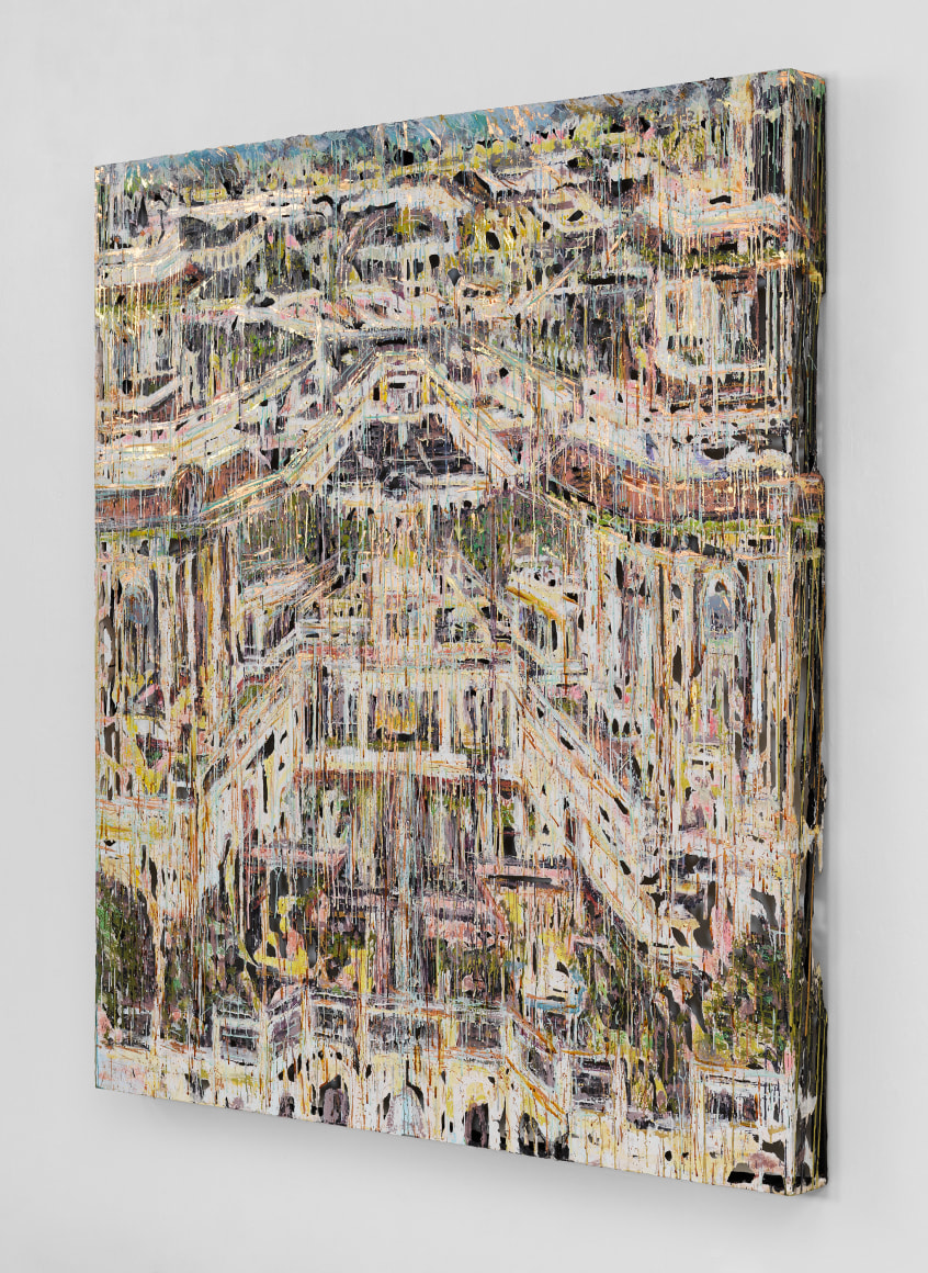 2021 polymer gypsum, fiberglass, steel, plaster, gold and copper leaf, pigment 70 x 63 x 4 inches 178 x 160 x 10 cm Photo credit Dan Bradica