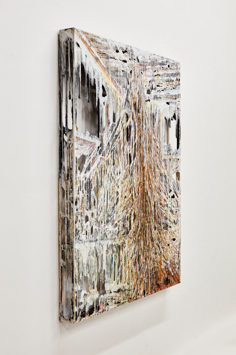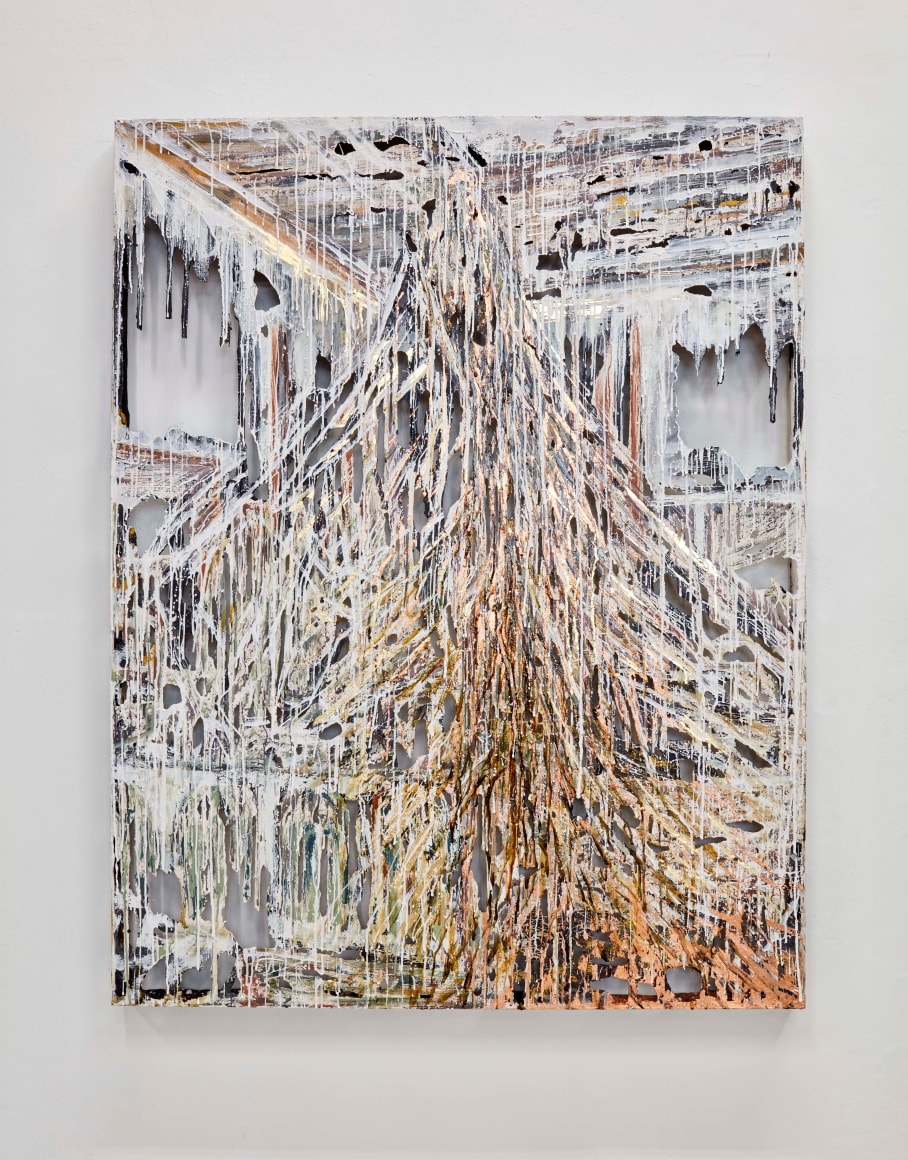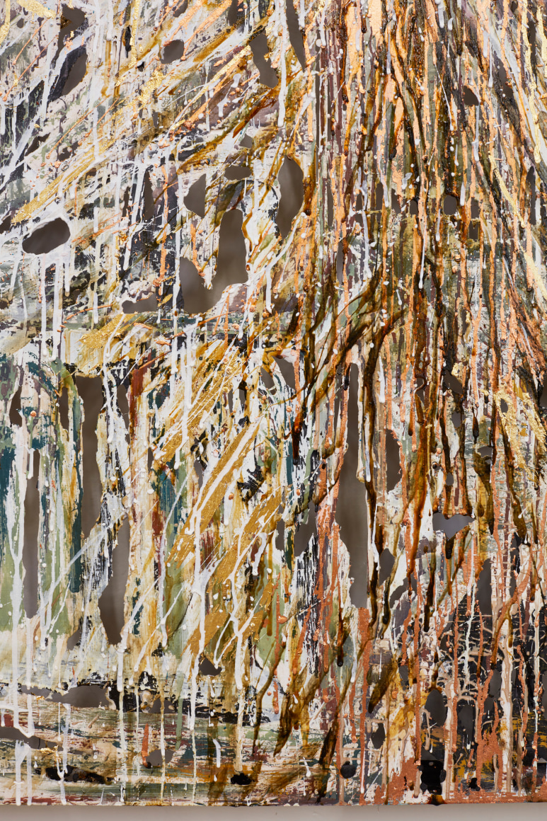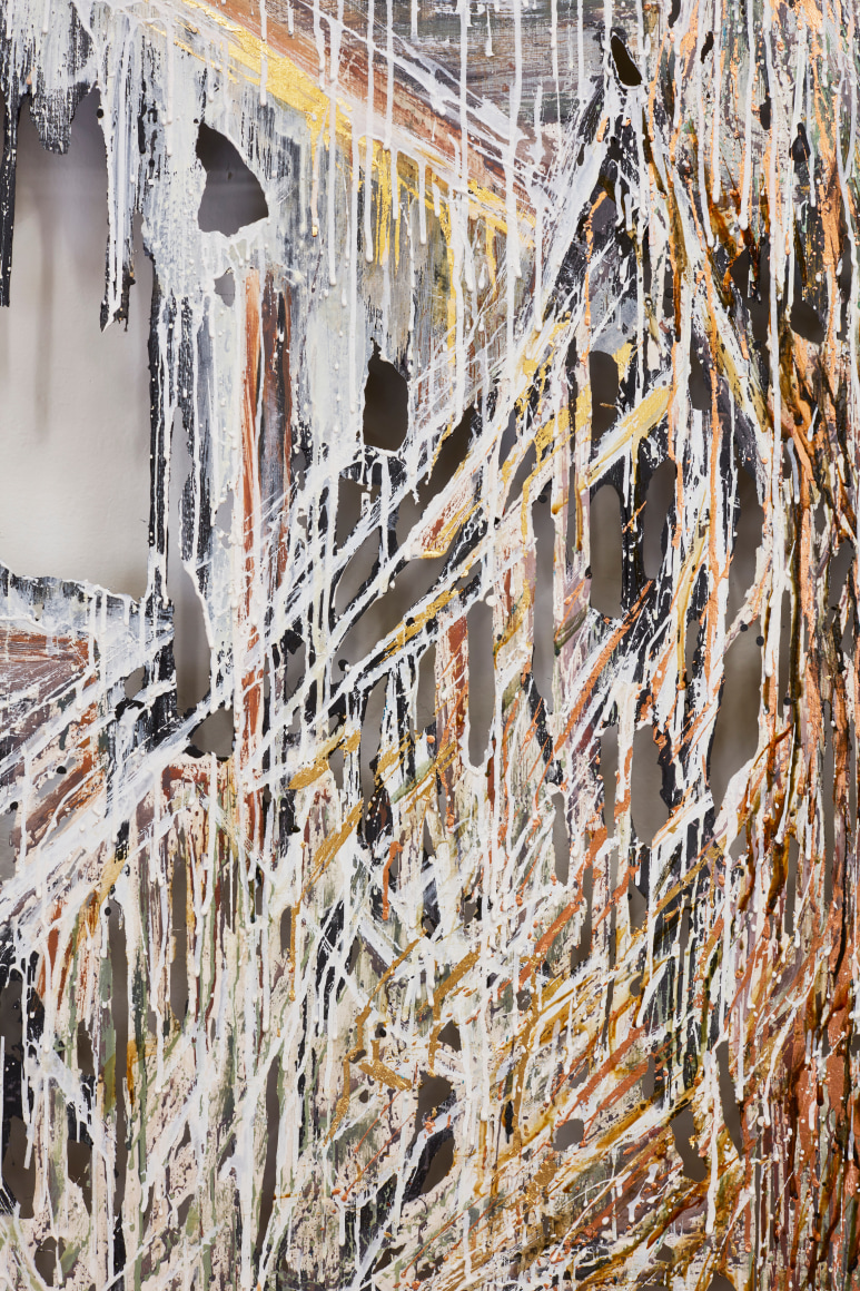 polymer gypsum, fiberglass, steel, plaster, copper and gold leaf, pigment