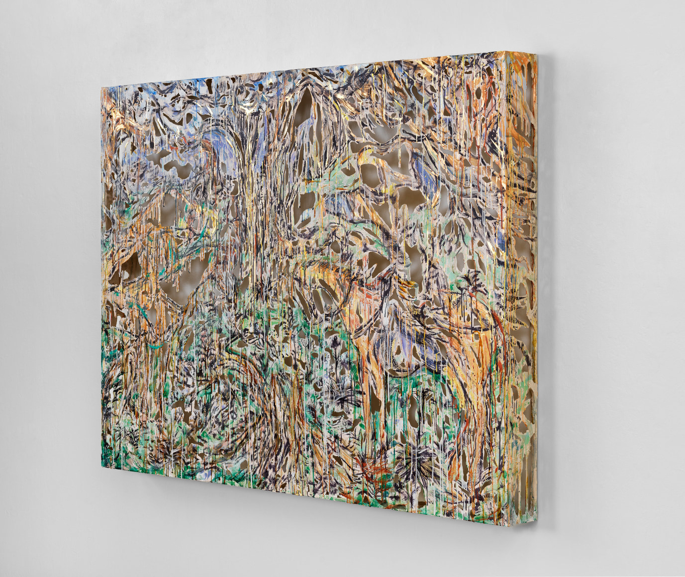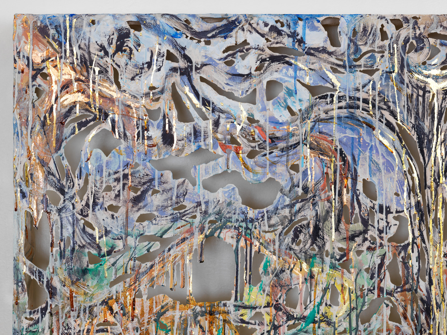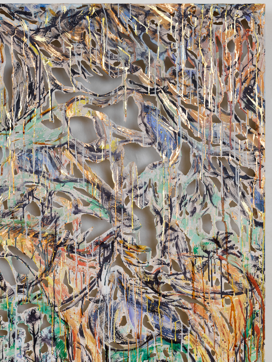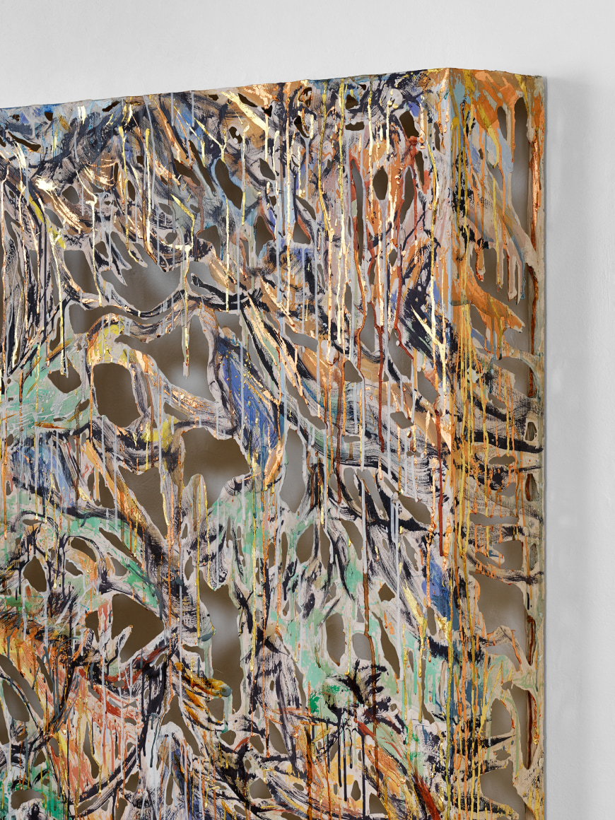 2020 polymer gypsum, fiberglass, steel, plaster, copper and gold leaf, pigment 48 x 62 x 5 1/2 inches 122 x 158 x 14 cm Photo credit Dan Bradica