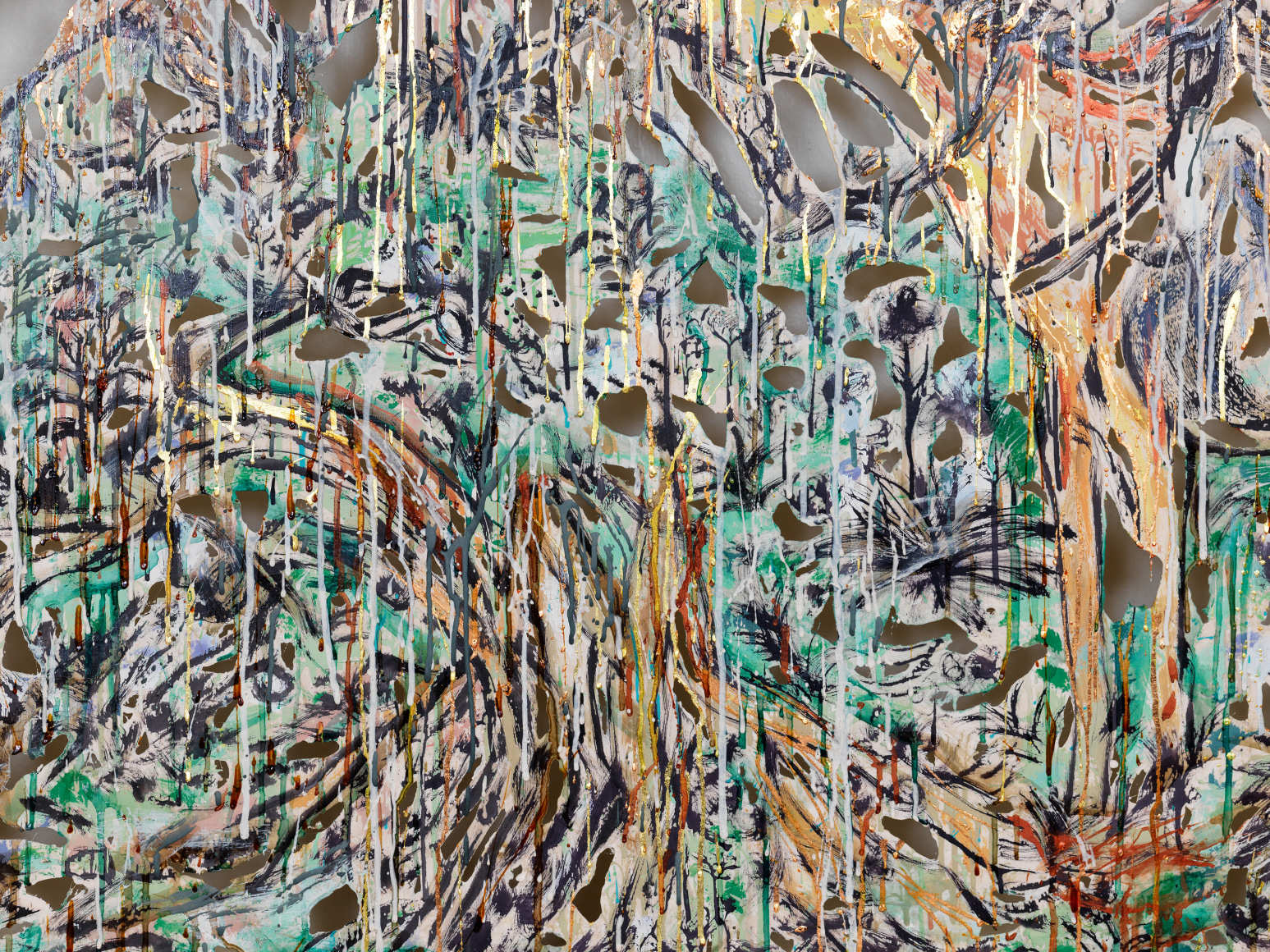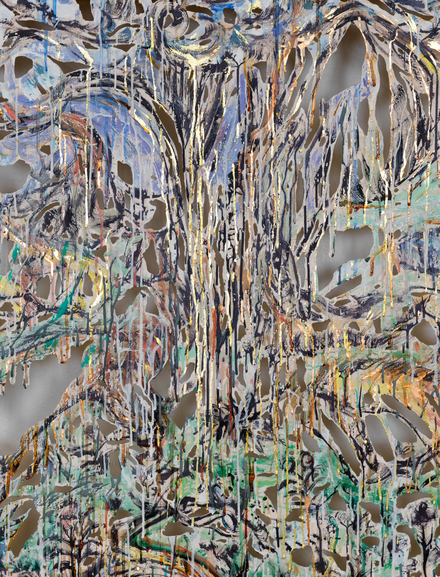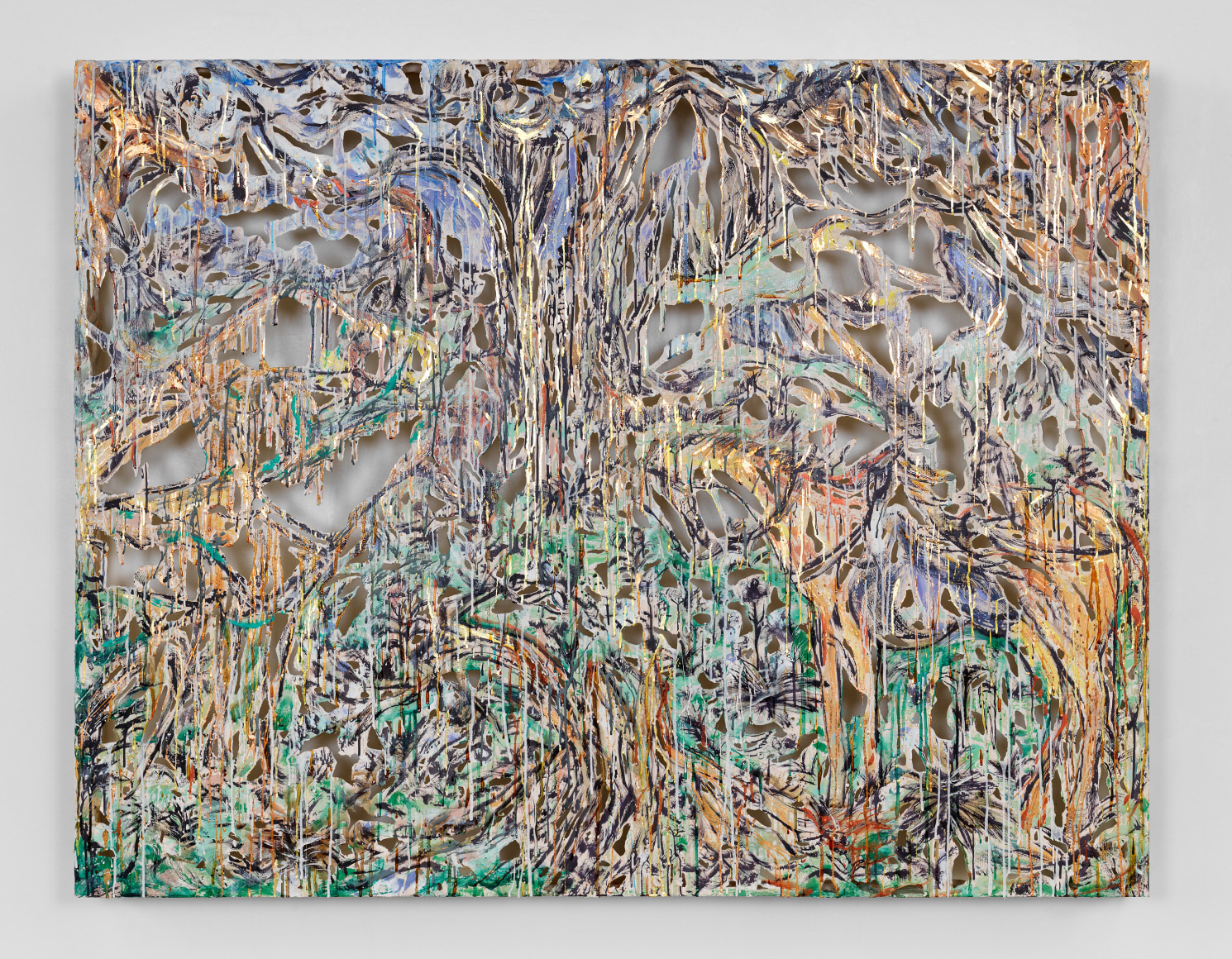 2020 polymer gypsum, fiberglass, steel, plaster, copper and gold leaf, pigment 48 x 62 x 5 1/2 inches 122 x 158 x 14 cm Photo credit Dan Bradica
