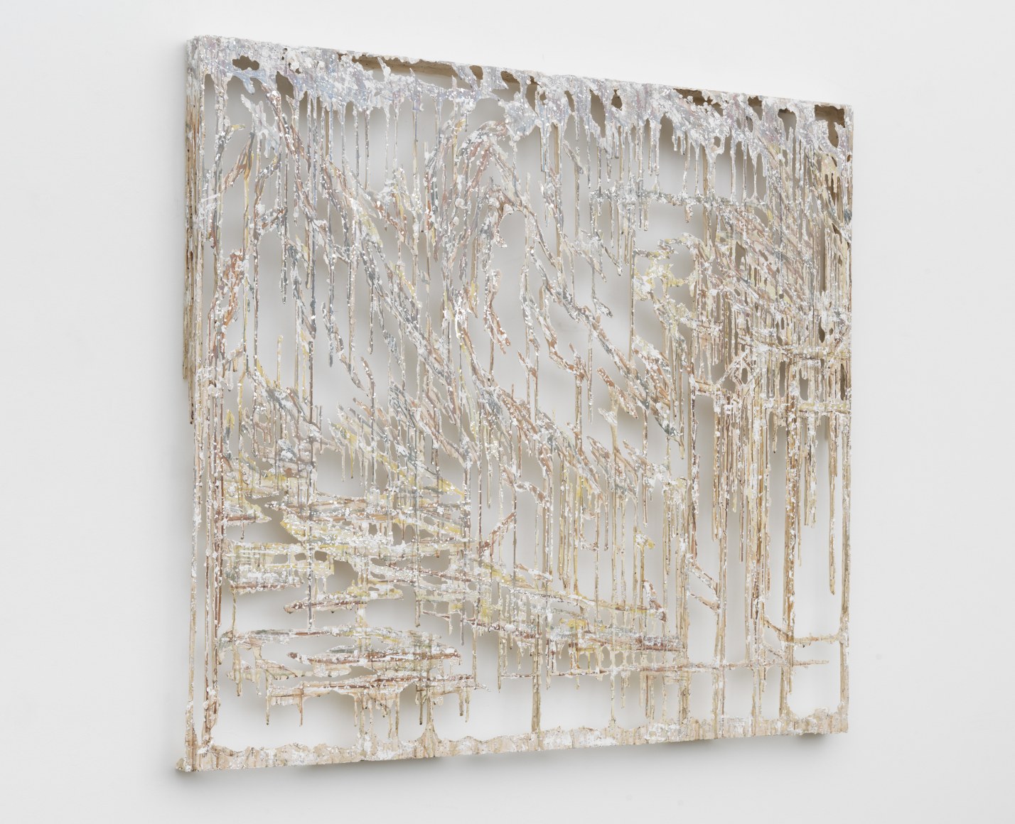 Polymer gypsum, fiberglass, steel, plaster, aluminum leaf, pigment