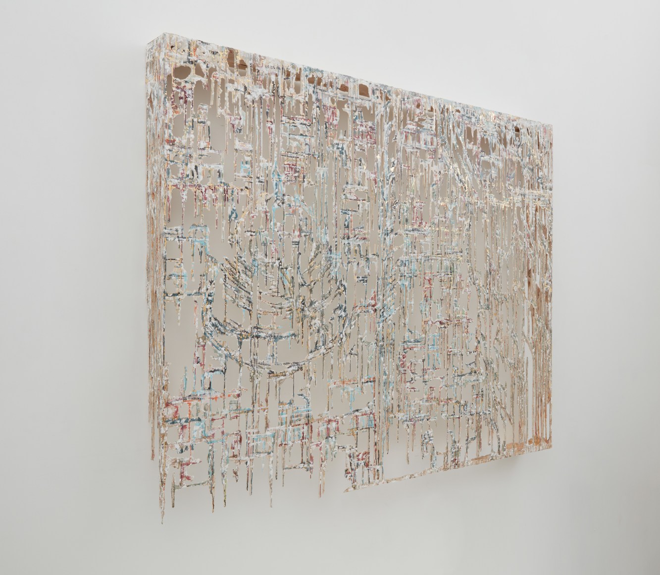 polymer gypsum, fiberglass, steel, plaster, gold leaf, pigment