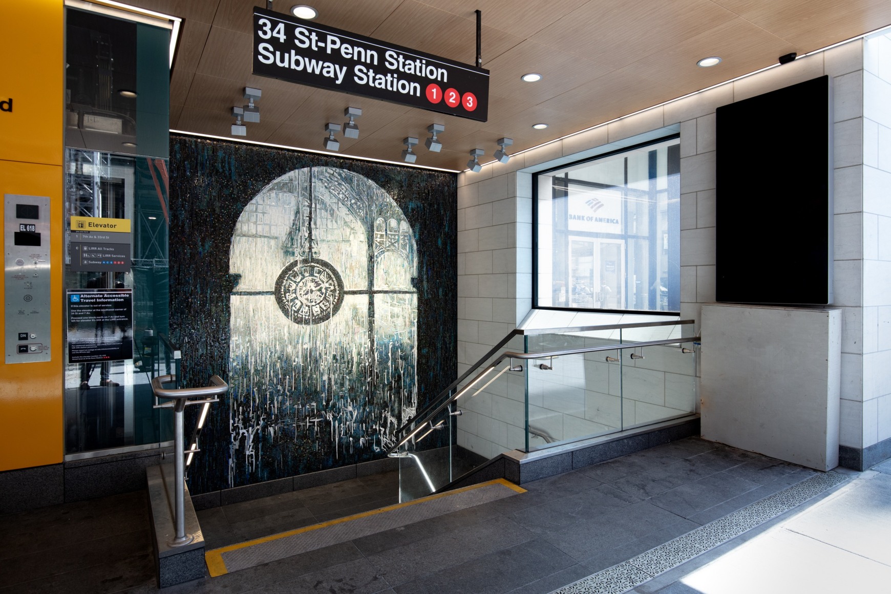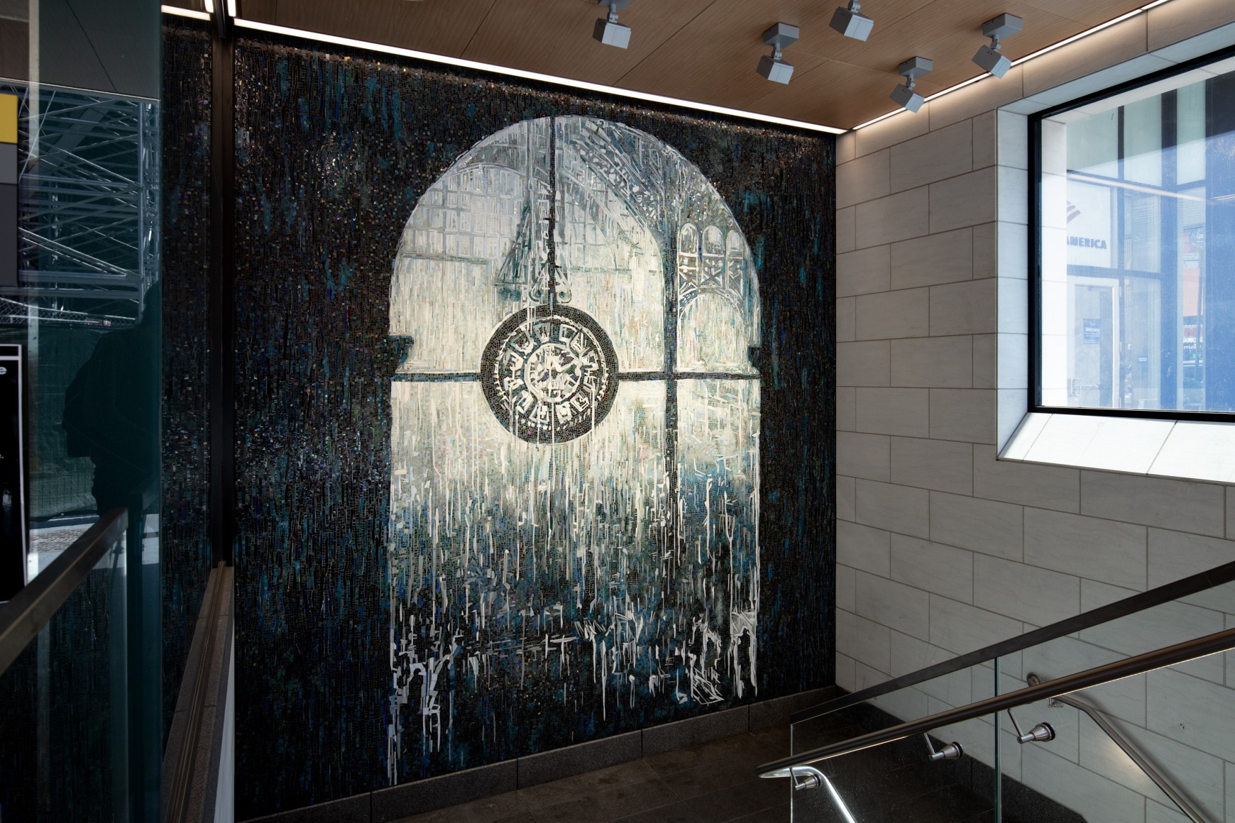 Al-Hadid’s new mosaic features the famed clock that hung at the entrance of the original station until the building was demolished in the 1960s.
