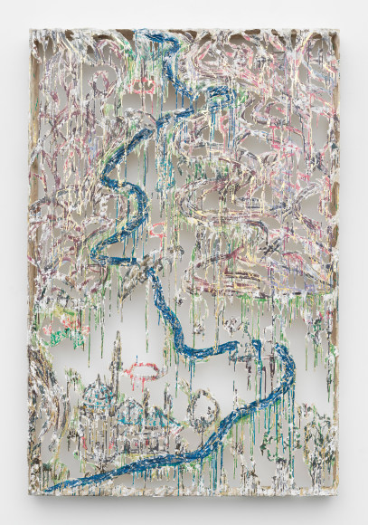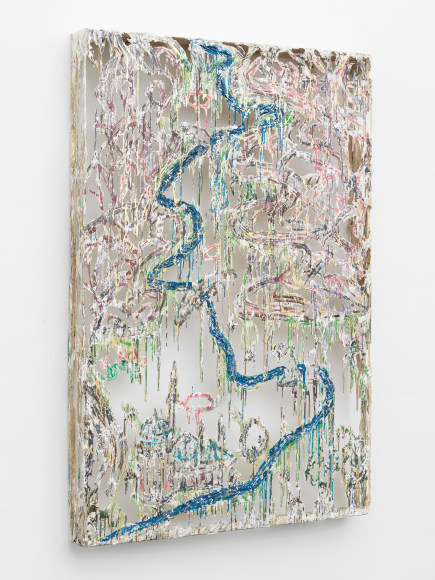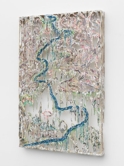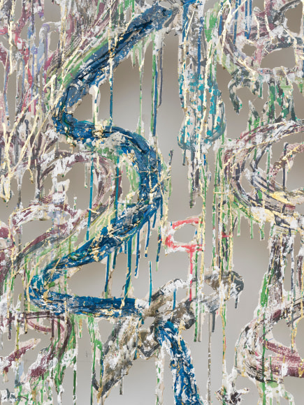 polymer gypsum, fiberglass, steel, plaster, gold leaf, painter's tape, pigment