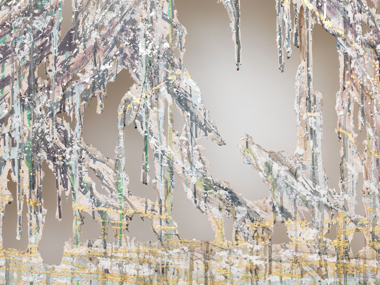 Polymer gypsum, fiberglass, steel, gold leaf, aluminum leaf